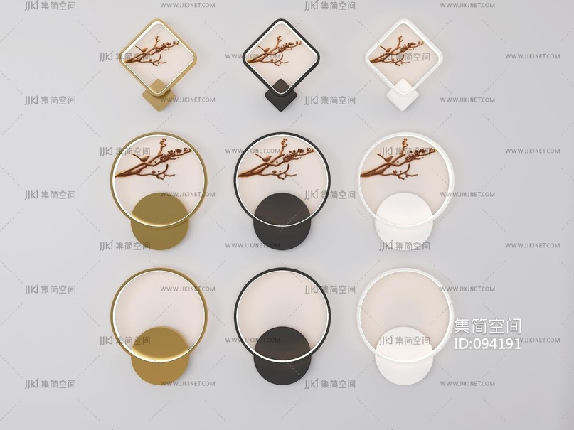 新中式花鸟圆形壁灯 3d模型下载 [模型ID:94191]