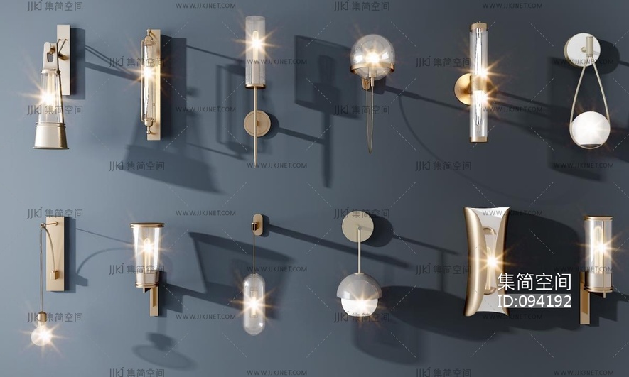 新中式水晶玻璃简约金属壁灯 3d模型下载 [模型ID:94192]