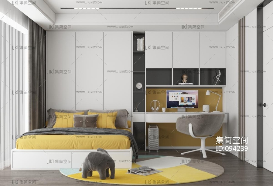 10现代儿童房卧室,写字台 3d模型下载 [模型ID:94239]