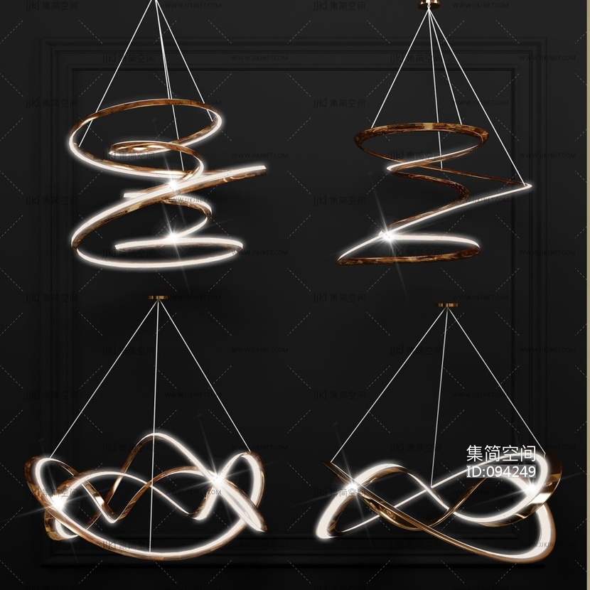 14-现代飘带吊灯,现代带掉3D模型vrrr3d模型下载