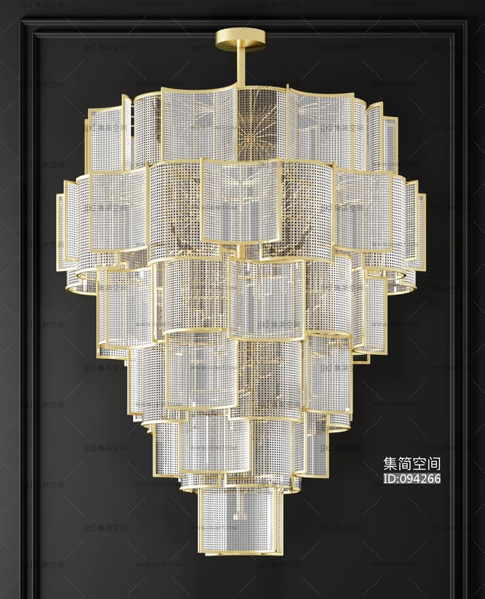 现代金属网格多层水晶吊灯 3d模型下载 [模型ID:94266]