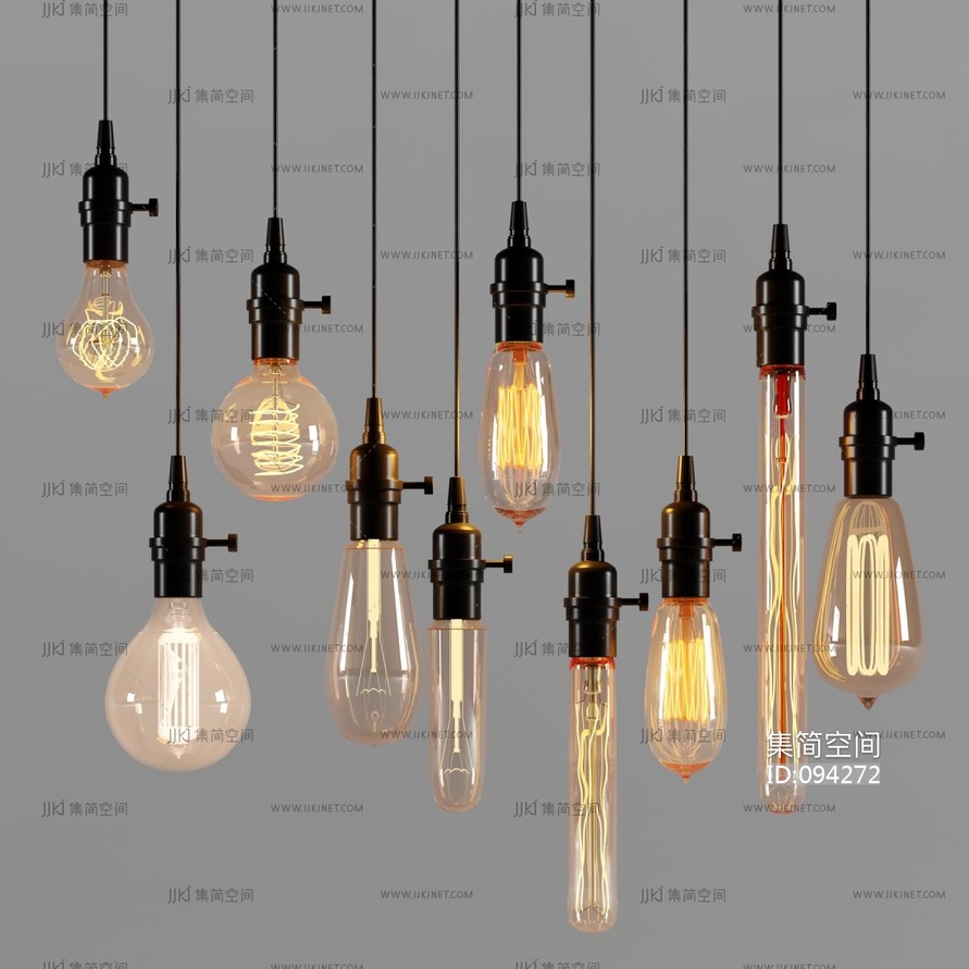 工业风玻璃灯泡吊灯 3d模型下载 [模型ID:94272]