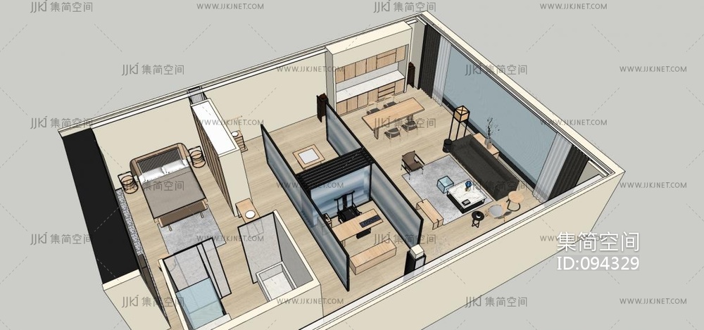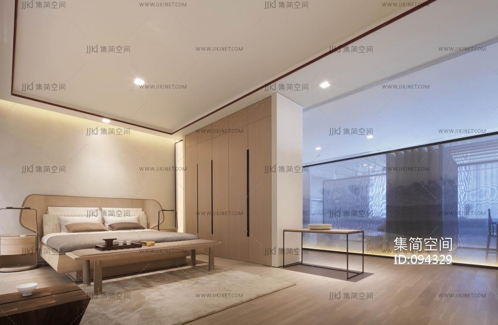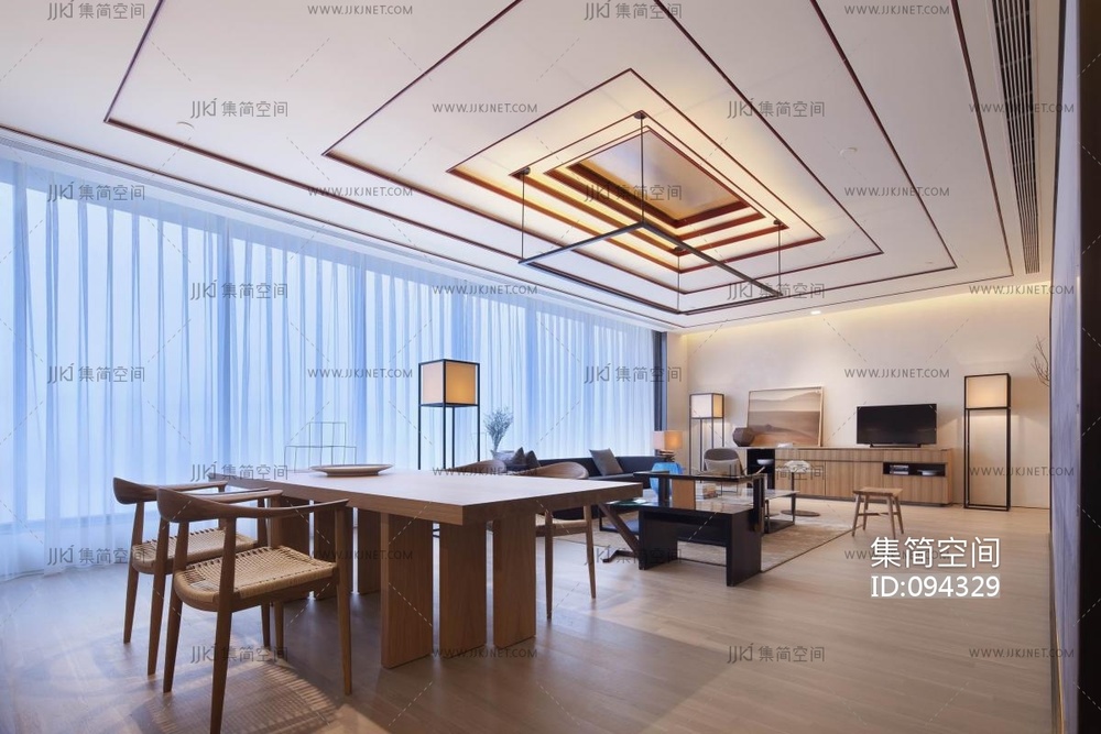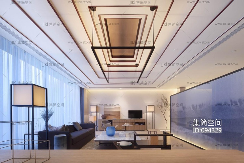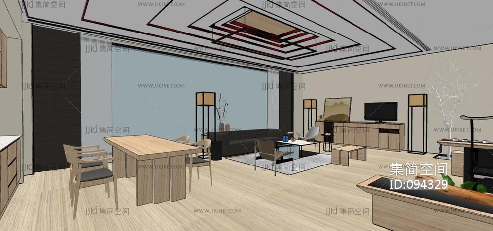 07新中式客厅,卧室,沙发书桌椅,电视柜,台灯,食盒家具展厅 (4) su草图模型下载 [模型ID:94329]