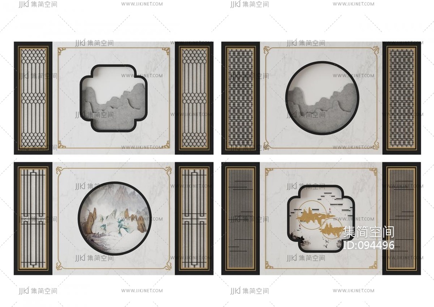 新中式山脉花格背景墙 3d模型下载 [模型ID:94496]