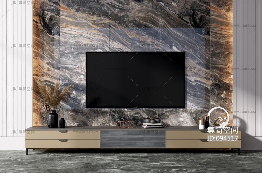 现代电视柜背景墙,花瓶 3d模型下载 [模型ID:94517]