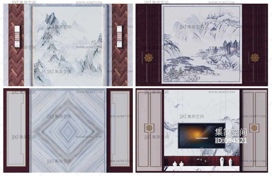 新中式电视背景墙 3d模型下载 [模型ID:94521]