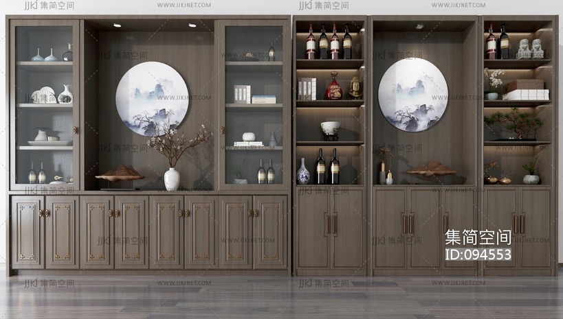 新中式实木酒柜 3d模型下载 [模型ID:94553]