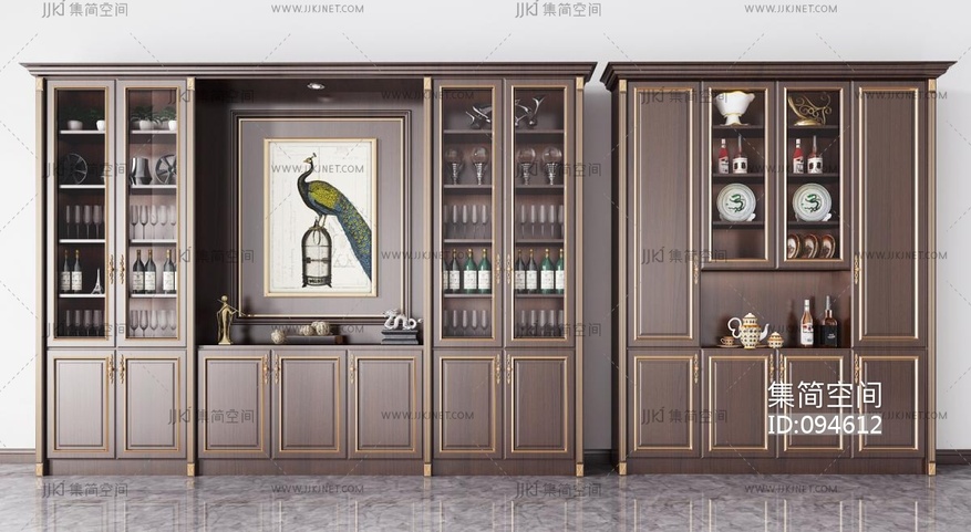 欧式实木多功能酒柜 3d模型下载 [模型ID:94612]
