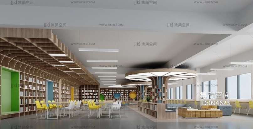 现代图书馆阅览室 3d模型下载 [模型ID:94623]
