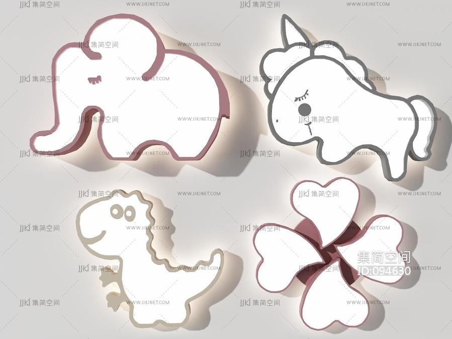 现代儿童卡通动物造型吸顶灯 3d模型下载 [模型ID:94630]