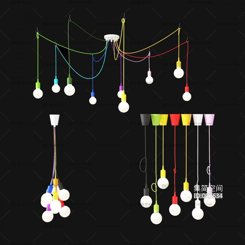 现代彩色儿童灯泡吊灯, 3d模型下载 [模型ID:94634]