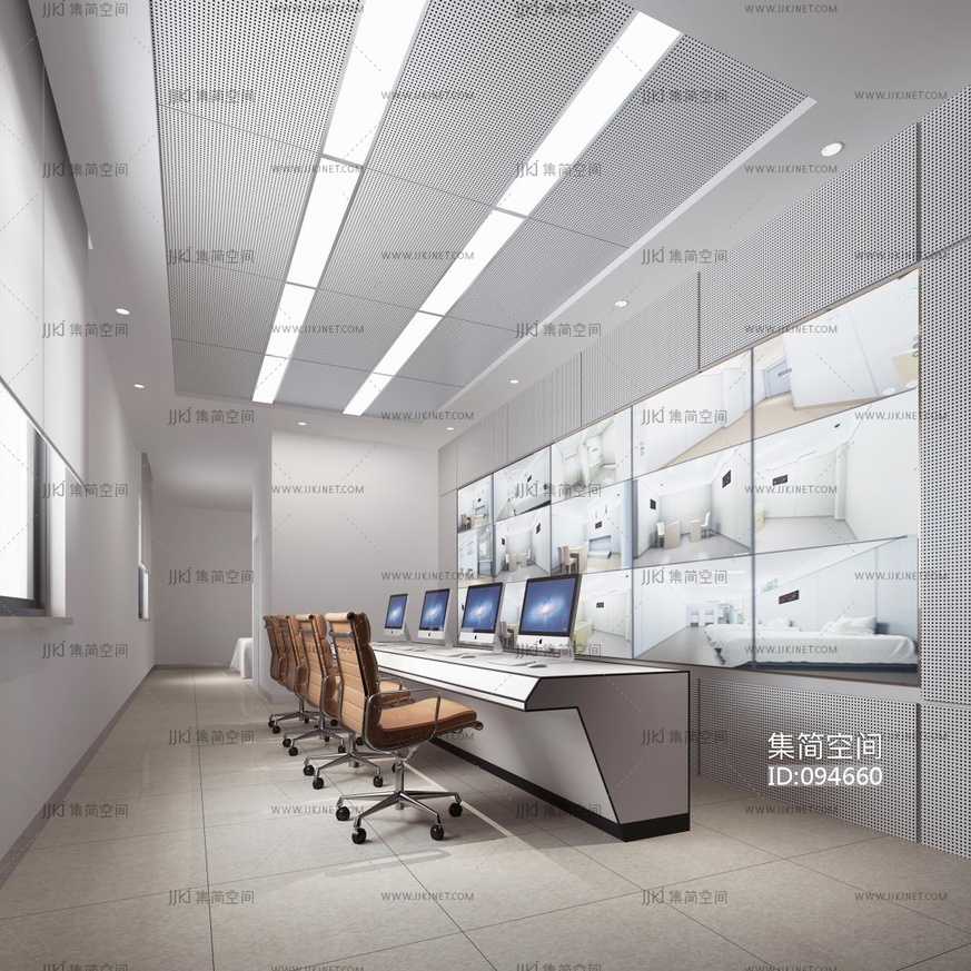 现代安防消防,监控室办公区 3d模型下载 [模型ID:94660]