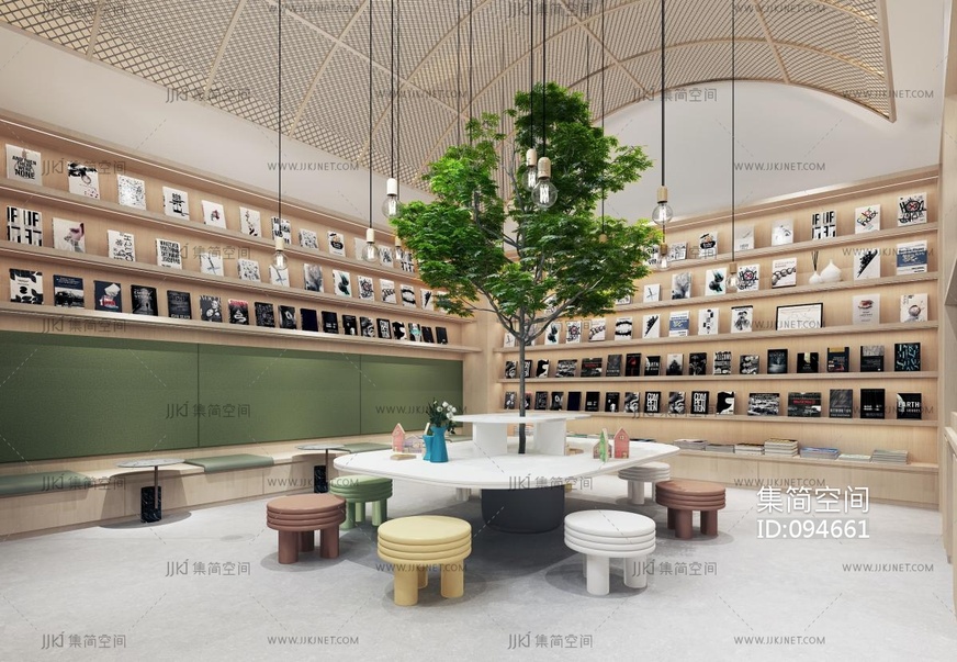 现代书吧图书馆,书店,阅读区,3d模型下载