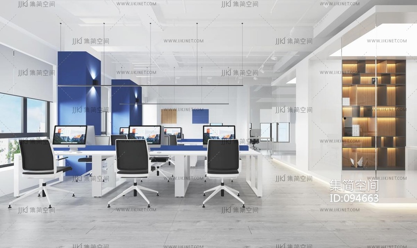 现代敞开式办公区 3d模型下载 [模型ID:94663]