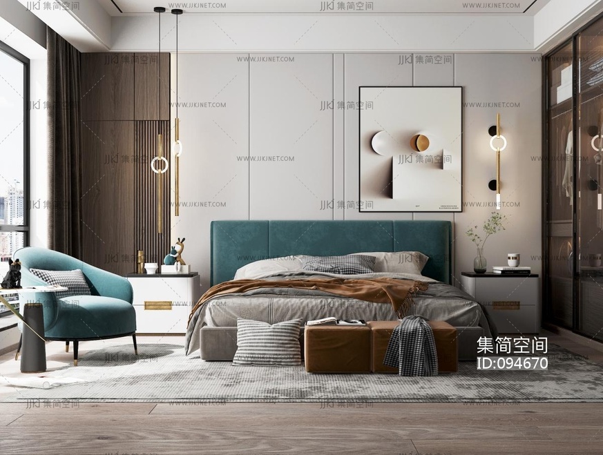 卧室,轻奢,暗黑风,现代轻奢卧室双人床,懒人沙发法式卧室3d模型下载