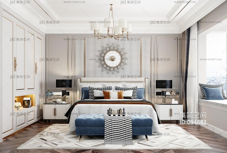 6法式中古家居卧室_主卧_飘窗卧室_高级灰卧室3D模型cr3d模型下载