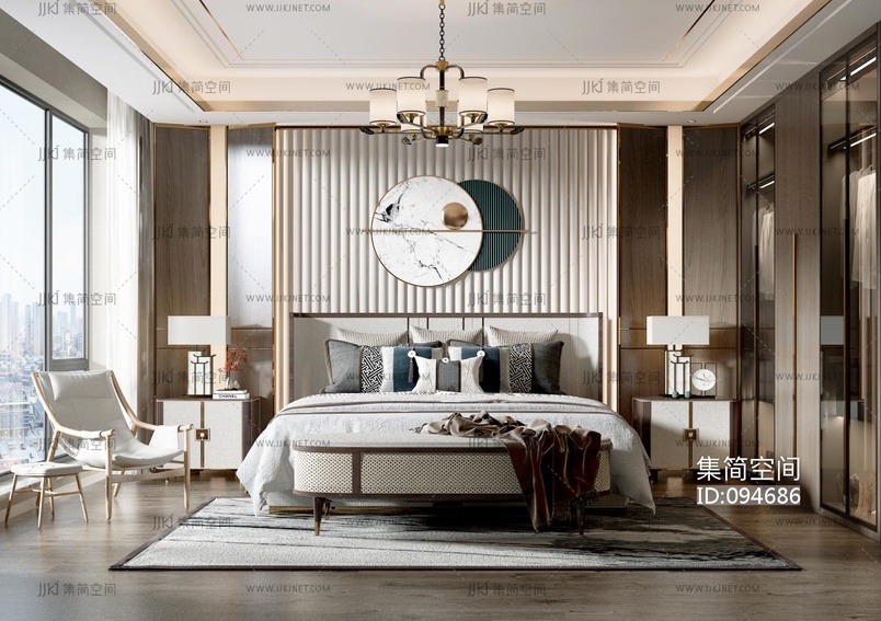 新中式卧室主人房 3d模型下载 [模型ID:94686]