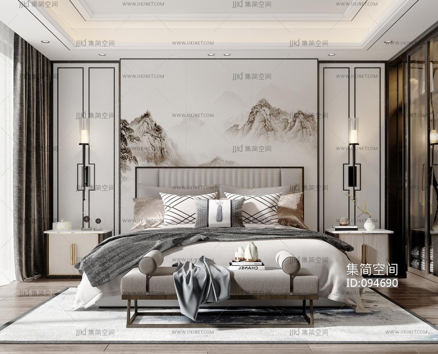 新中式卧室主人房 3d模型下载 [模型ID:94690]