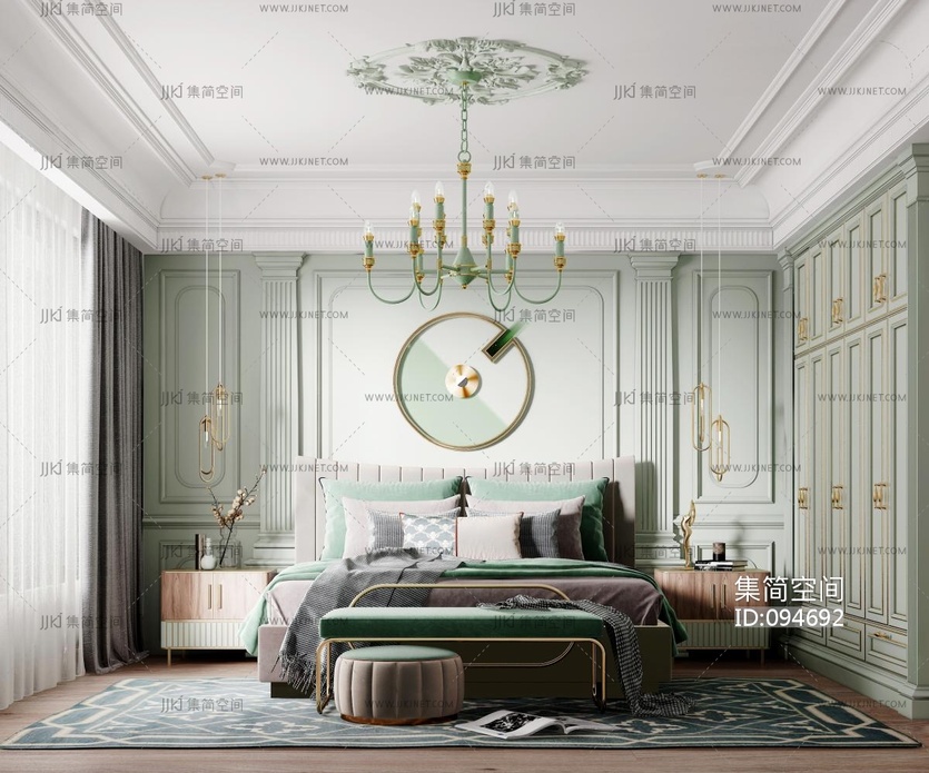 法式轻奢卧室 3d模型下载 [模型ID:94692]