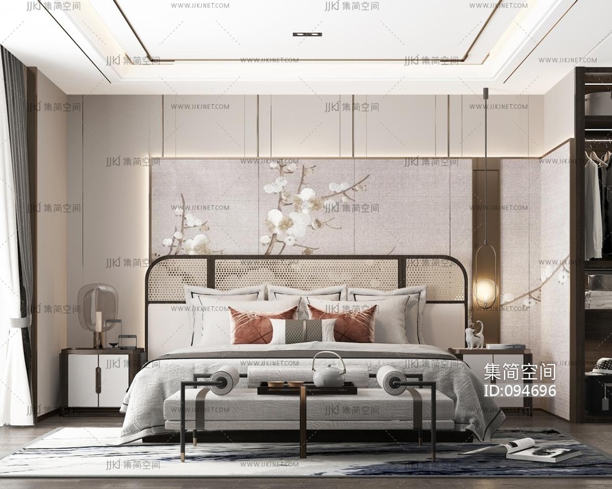 新中式轻奢卧室 3d模型下载 [模型ID:94696]