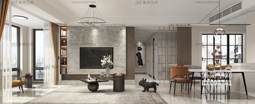 现代客餐厅全景茶几餐桌椅 3d模型下载 [模型ID:94741]