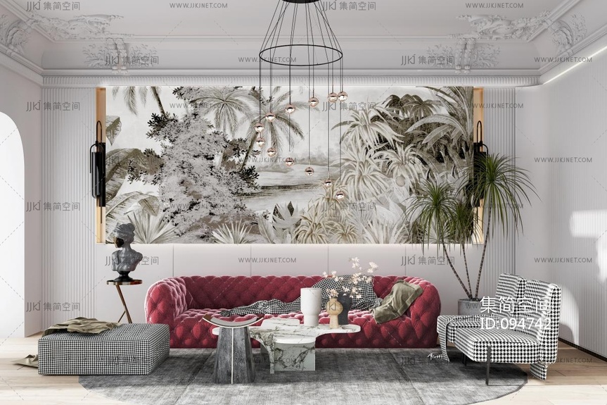17-11-19简欧,法式布艺皮革沙发 3d模型下载 [模型ID:94742]
