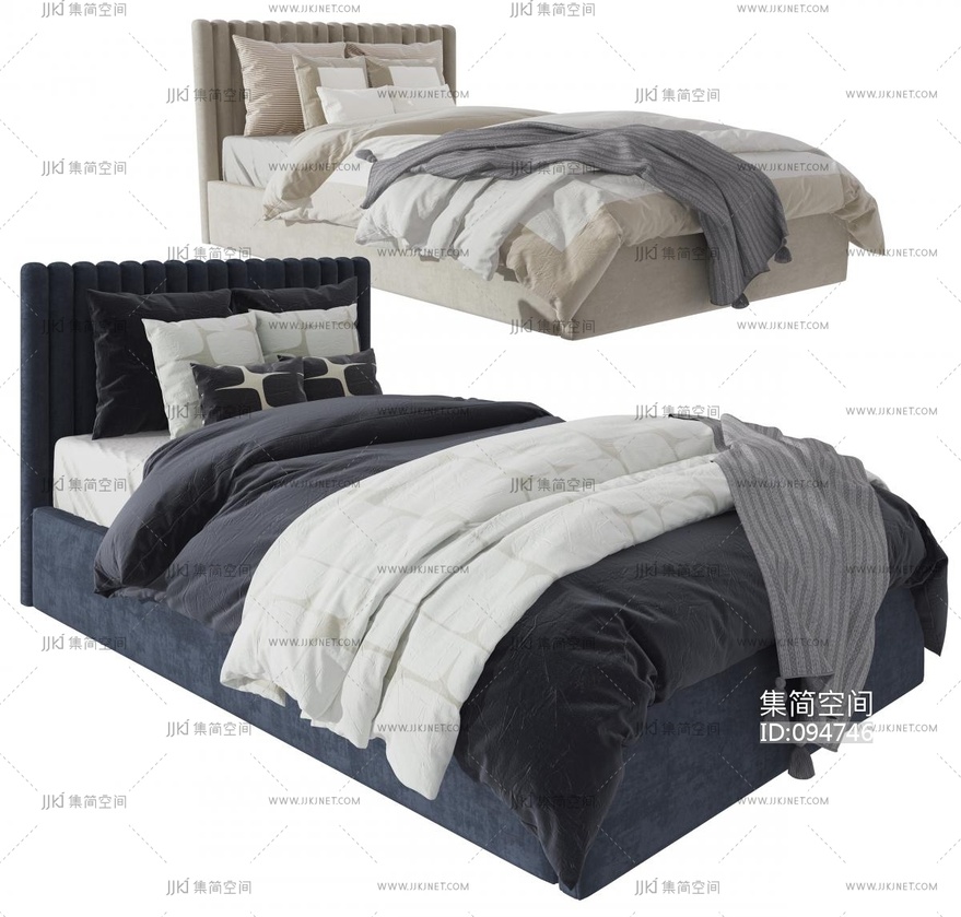 现代布艺单人床 3d模型下载 [模型ID:94746]