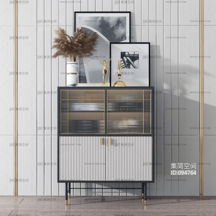 现代玄关鞋柜装饰柜,摆件书籍,储物柜 3d模型下载3d模型下载