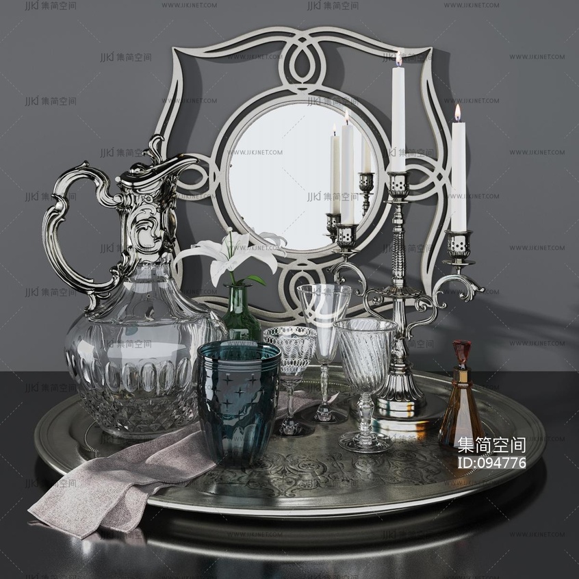 欧式烛台,水壶,玻璃杯组合 3d模型下载 [模型ID:94776]