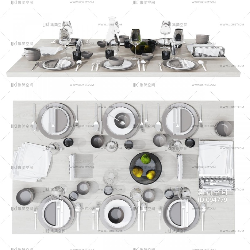 欧式厨房厨具餐具盘子水壶3d模型下载