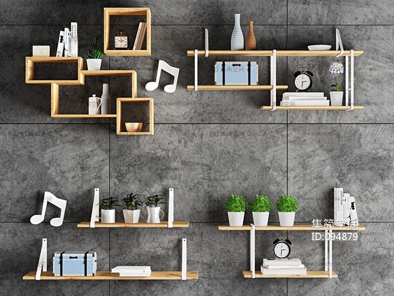 北欧吊柜装饰品,隔板置物架3d模型下载