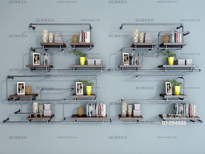 工业风管道,书籍吊架置物架 3d模型下载 [模型ID:94886]