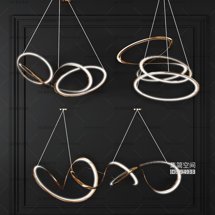 现代环形金属创意吊灯 3d模型下载 [模型ID:94933]