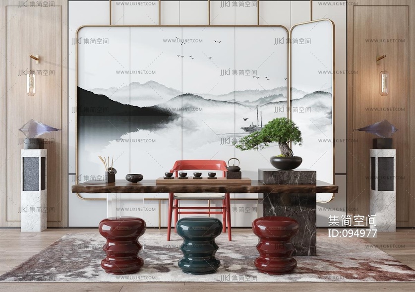 新中式实木茶桌椅 3d模型下载 [模型ID:94977]
