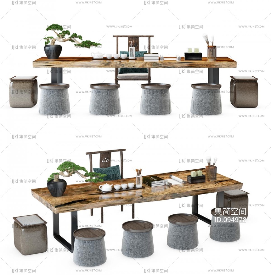 新中式实木茶桌椅 3d模型下载 [模型ID:94978]
