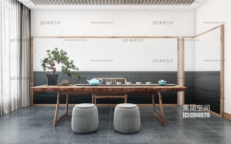 新中式茶桌椅 3d模型下载 [模型ID:94979]