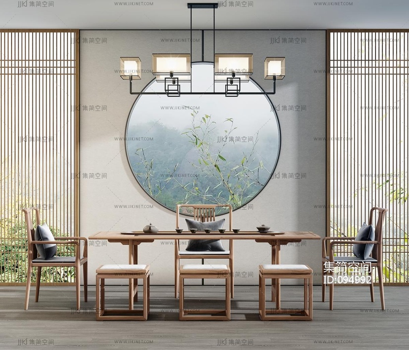 新中式实木茶桌椅 3d模型下载 [模型ID:94992]