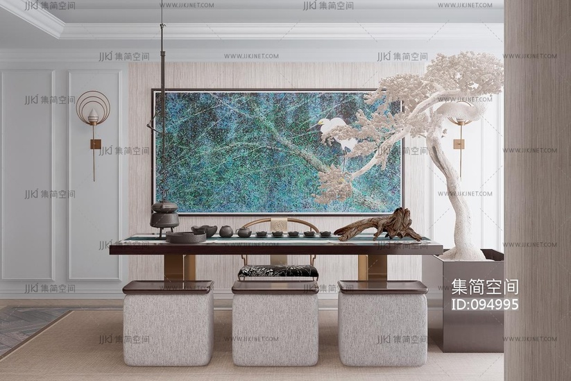 新中式轻奢茶桌椅 3d模型下载 [模型ID:94995]