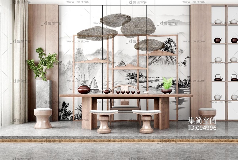 新中式实木茶桌椅 3d模型下载 [模型ID:94996]