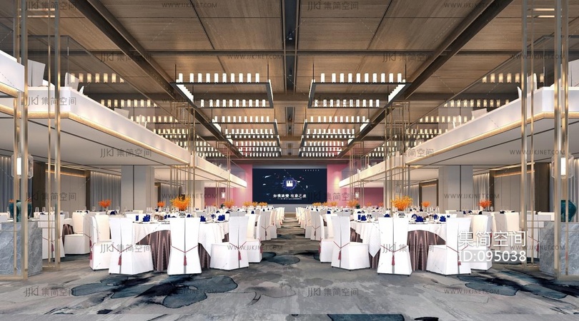 新中式酒店宴会厅 3d模型下载 [模型ID:95038]
