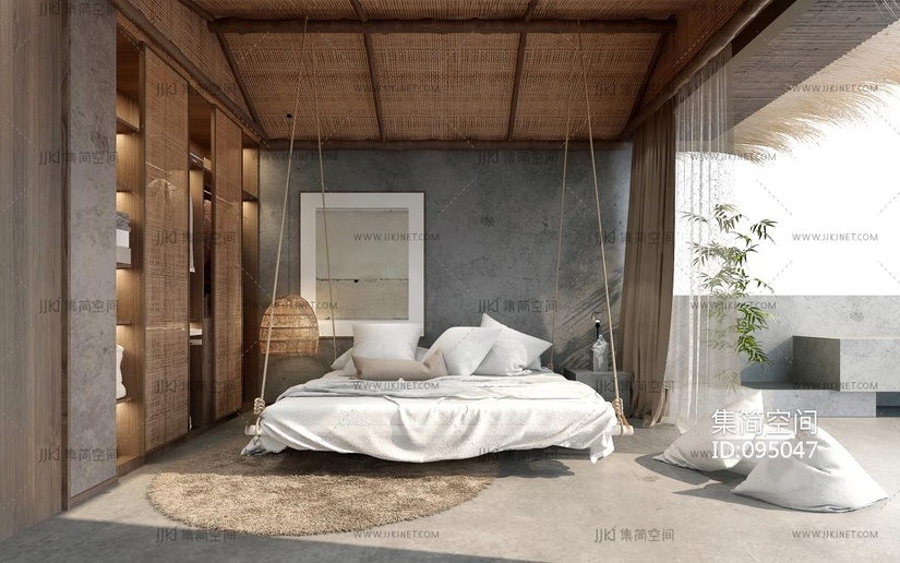 东南亚自然风,民宿酒店客房 3d模型下载 [模型ID:95047]