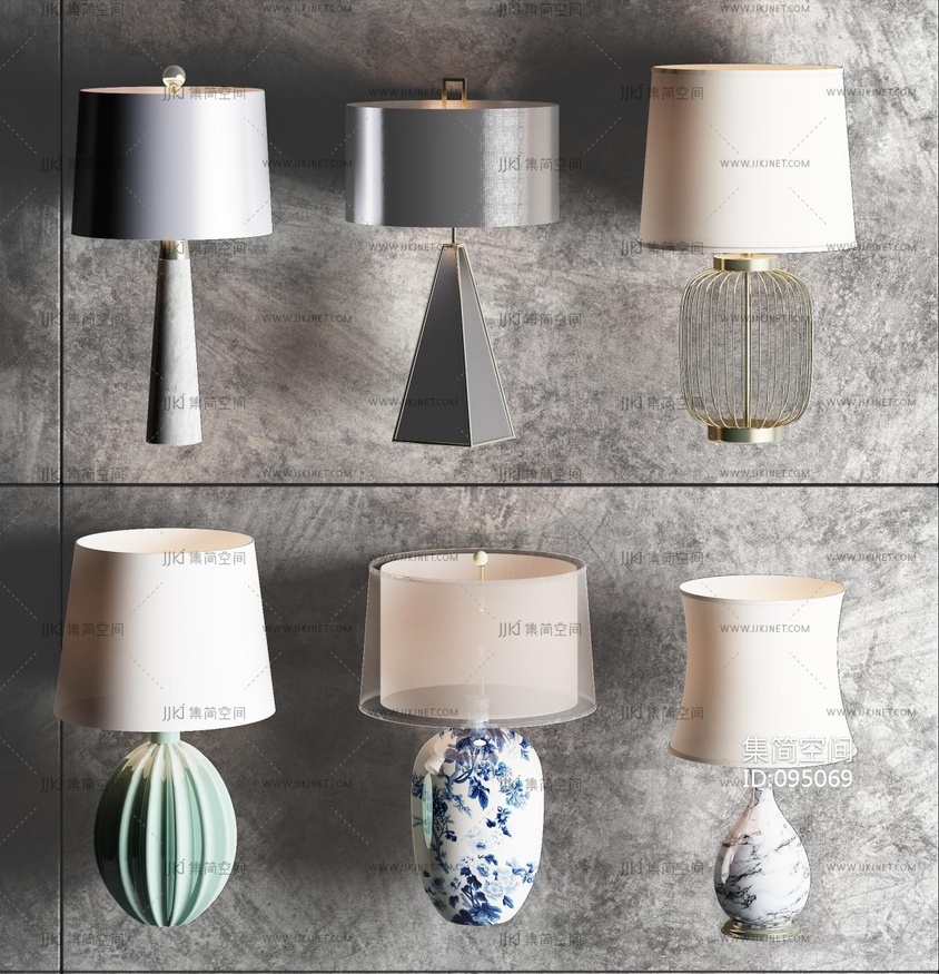新中式青花瓷圆形台灯组合 3d模型下载 [模型ID:95069]