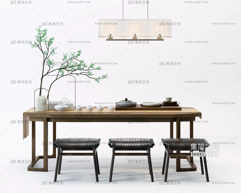 新中式实木茶桌椅 3d模型下载 [模型ID:95089]