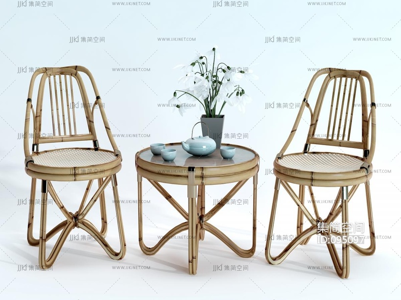 新中式户外藤编休闲茶桌椅 3d模型下载 [模型ID:95097]