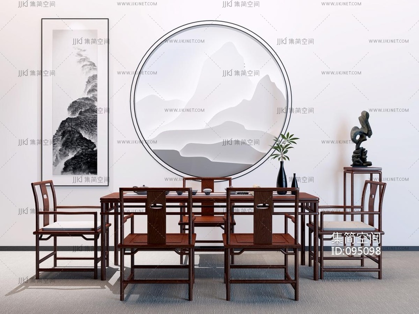新中式茶桌椅组合 3d模型下载 [模型ID:95098]