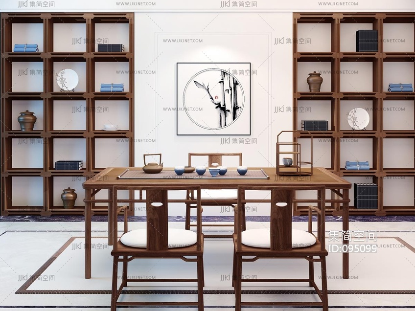 新中式茶桌椅组合 3d模型下载 [模型ID:95099]