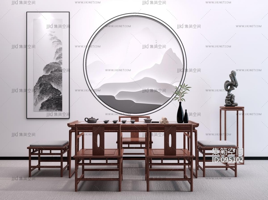 新中式茶桌椅组合 3d模型下载 [模型ID:95102]
