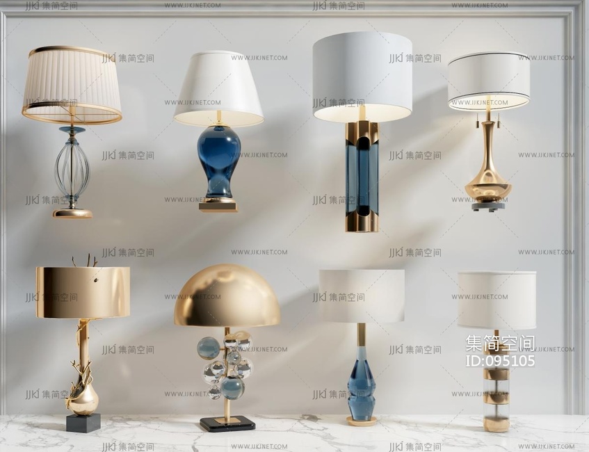 现代金属水晶台灯组合 3d模型下载 [模型ID:95105]