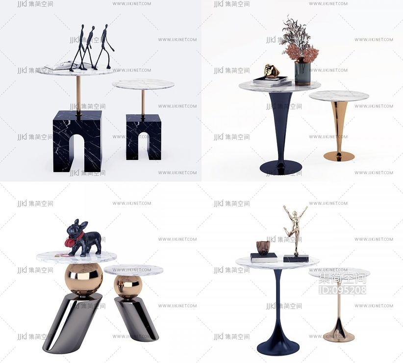欧式金属大理石咖啡桌圆形边桌圆形桌子3D模型3d模型下载