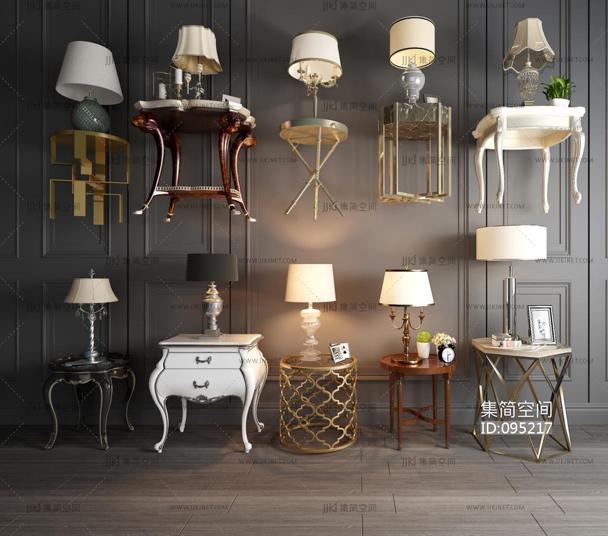 欧式边几圆几床头柜组合 3d模型下载 [模型ID:95217]